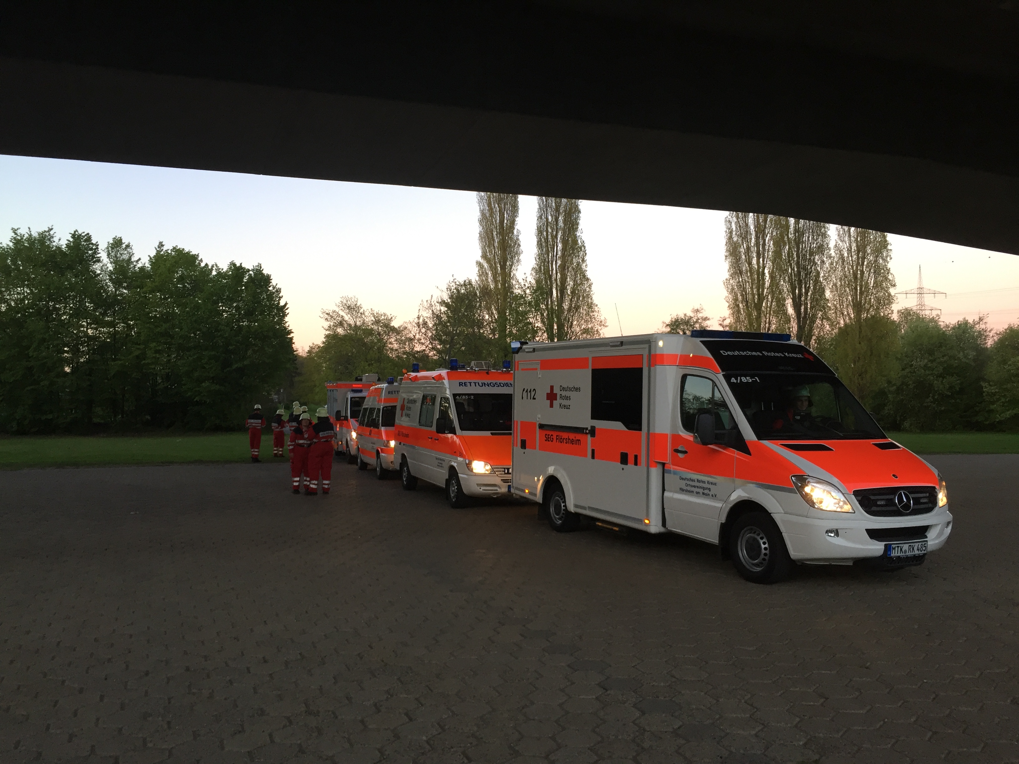 Dieser Abend war eher praktisch veranlagt. Der Sommer steht vor der Tür, die Temperaturen steigen und es bleibt länger hell - das nutzten wir aus, um mit unseren Fahrzeugen das Anfahren und das Errichten eines Behandlungsplatzes (BHP 25) zu trainieren. So wurde zum Beispiel das Aufstellen an der Asylunterkunft im Flörsheimer Gewerbegebiet in der Liebigstraße vor Ort erklärt. Somit stehen sich Einsatzkräfte von Feuerwehr und DRK nicht im Weg und jeder weiß wo er stehen muss, sollte es dort zu einer größeren Schadenslage kommen.